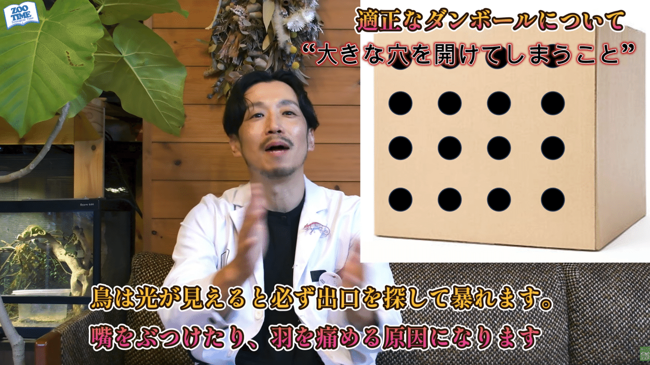 広すぎる箱は、暴れて羽を傷つける危険があります。