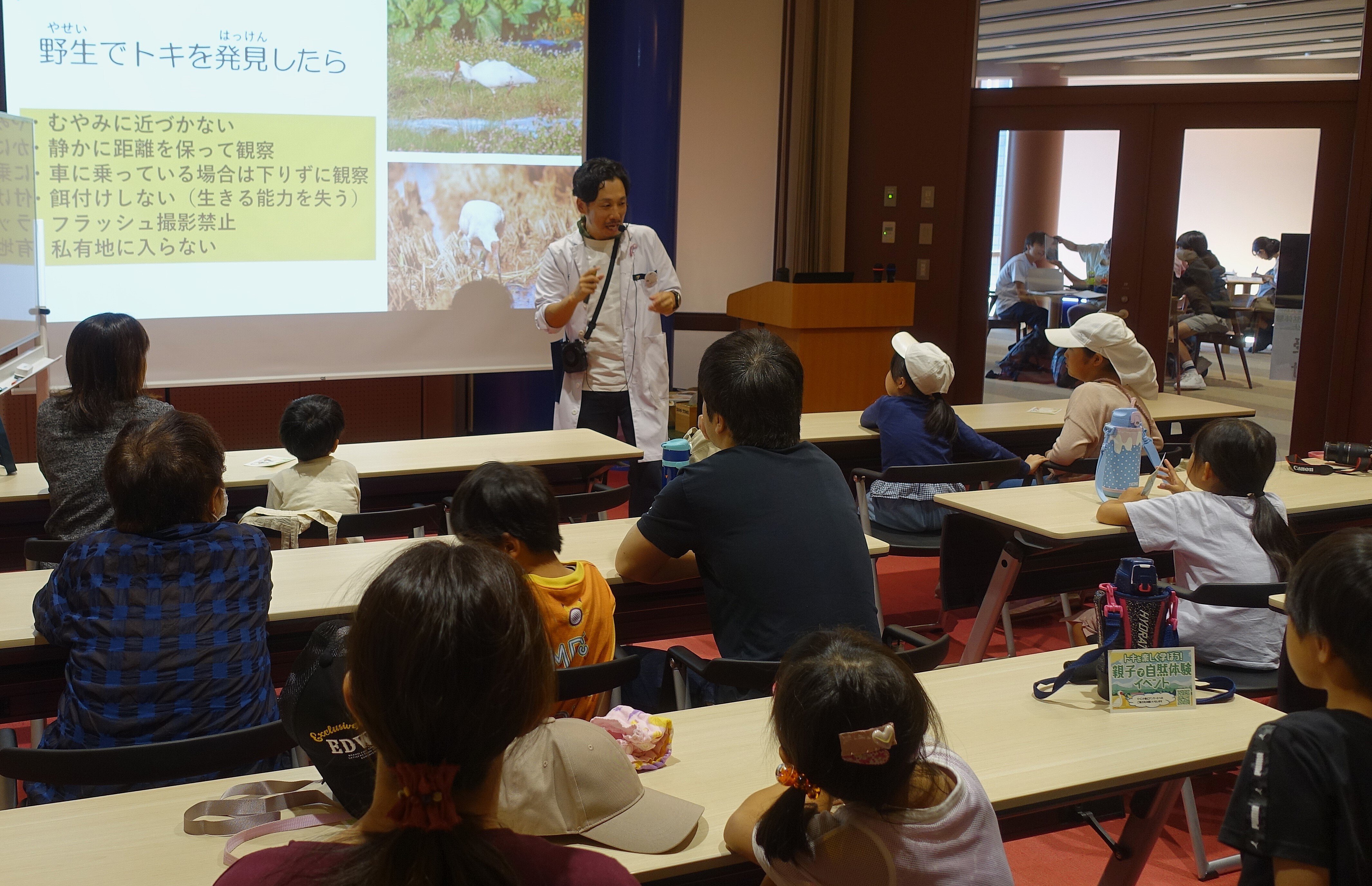 飼育繁殖に初期から携わってきた経験談を交えて、トキの生態や歴史を楽しく教えてもらいます♪